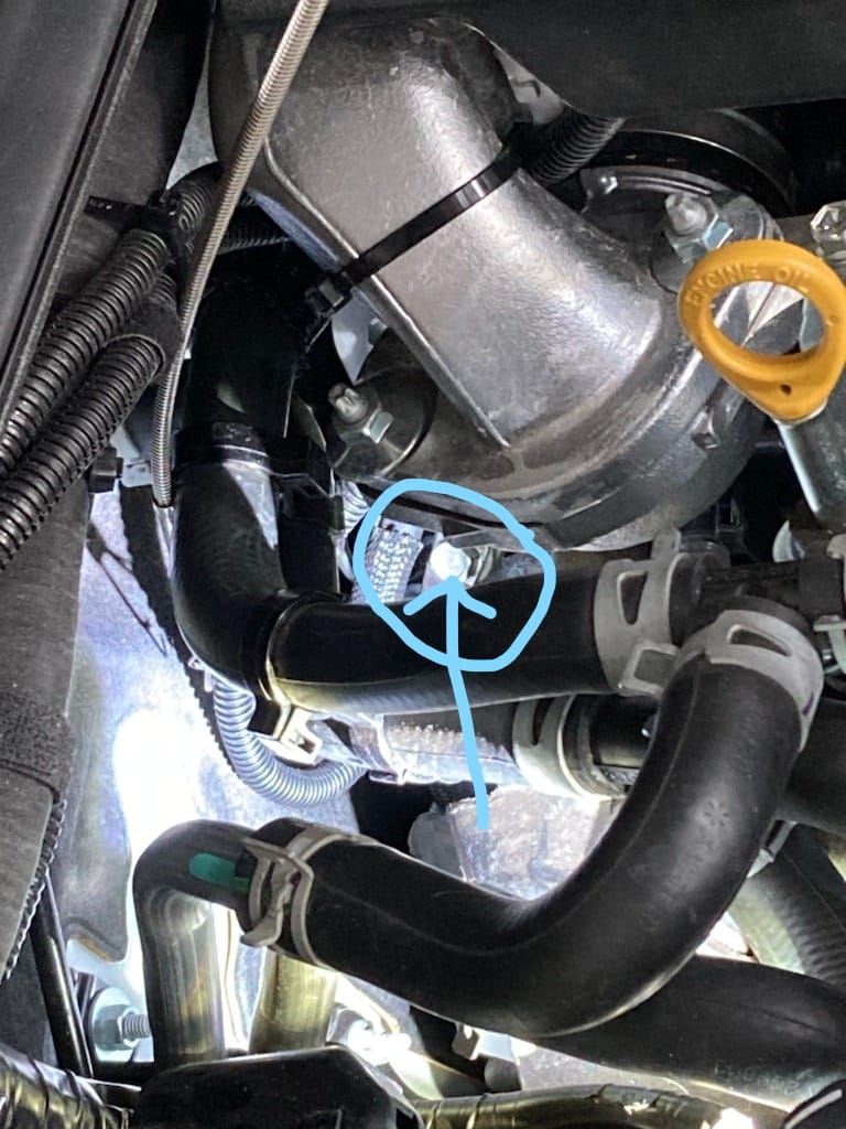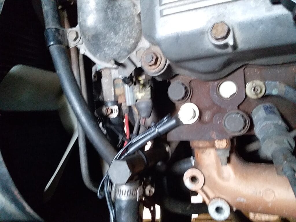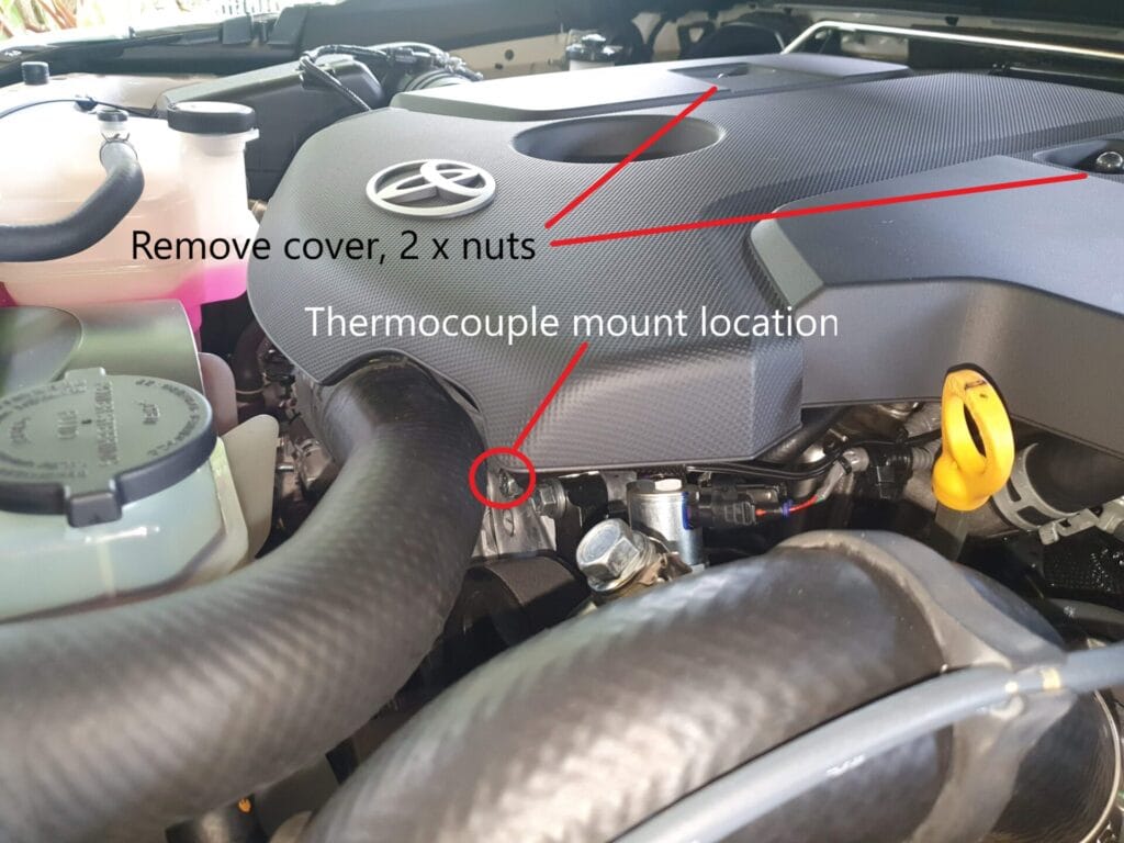 This current model Hilux has a dual bolt-on sensor EG01-2 installed with a sensor on the front of the head near the top radiator hose outlet, and the second on the rear of the head.