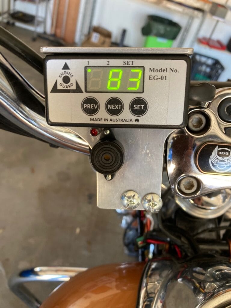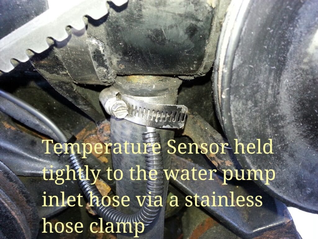 It has a loud audible alarm that alerts you to a warning temperature (that you pre-set). I found my normal operating temperature on the head at the attachment point I chose was about 70 degrees, so I set 75 degrees for my warning. You can calibrate the gauge’s displayed temperature with the actual water temperature with a cheap food thermometer stuck into your radiator cap, and then adjust your setting to suit. I am happy with just lining it up above my known normal engine running temperature.