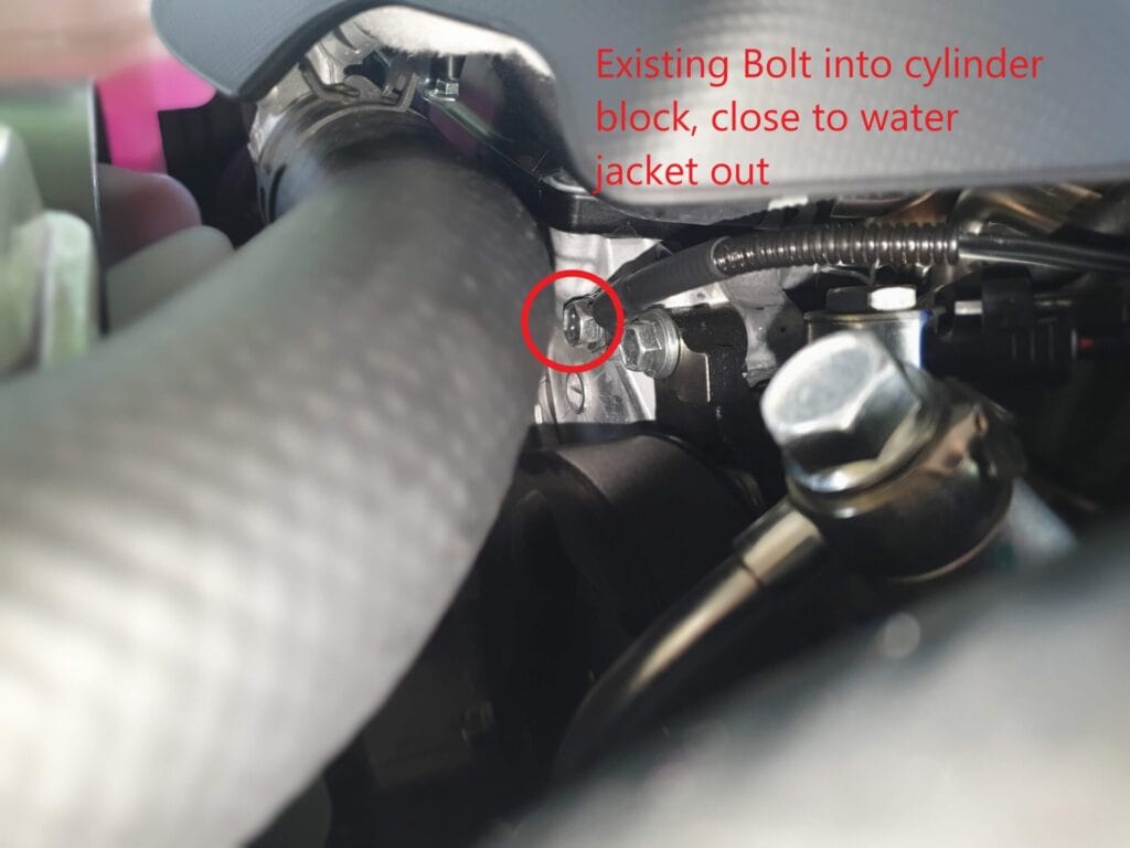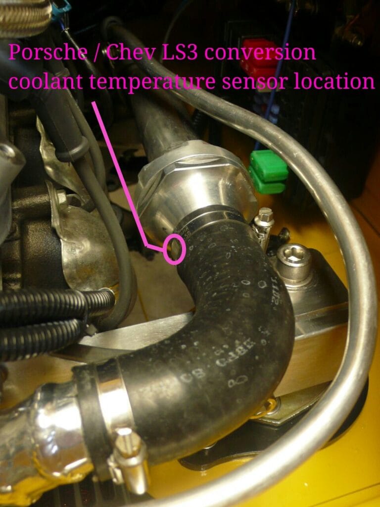 This location has proven over years to provide the fastest response to temp changes- but is on the exhaust side of the cylinder head which is normally to be avoided. In this case, the location is around 100mm from the nearest exhaust port and so temp changes due to higher exhaust temps are not significant.