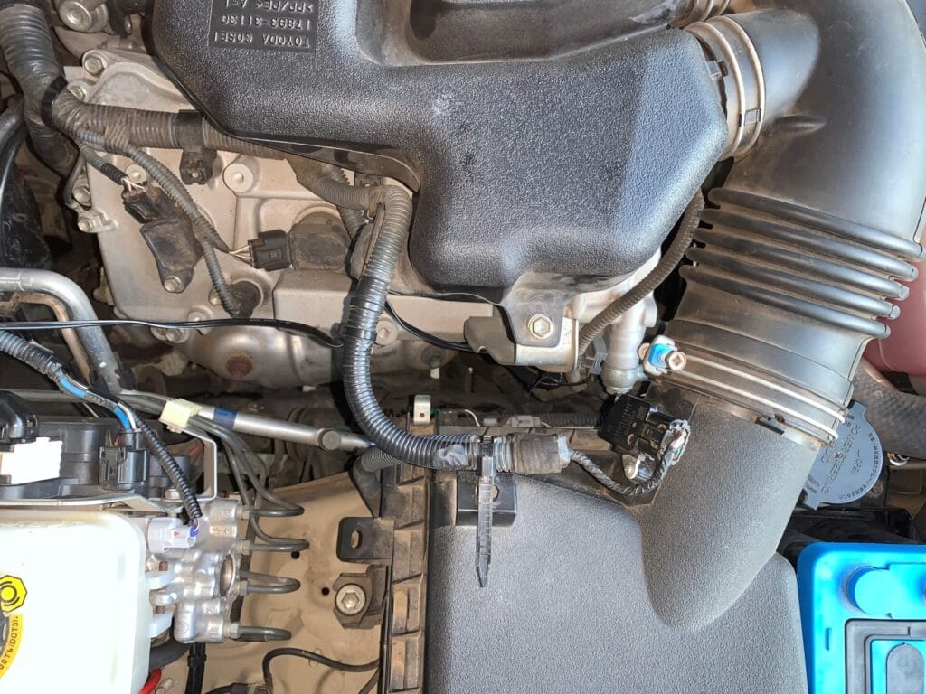This was an install on the current model 2.8l Toyota diesel. A EG01-2 dual sensor model was used with a sensor on the front of the head, and a second sensor at the rear of the cylinder head casting. This sensor on the rear was on the non-prefered exhaust side of the head, but is at least 100mm from the exhaust ports- and there are no other easily accessible locations on the inlet side of the head.