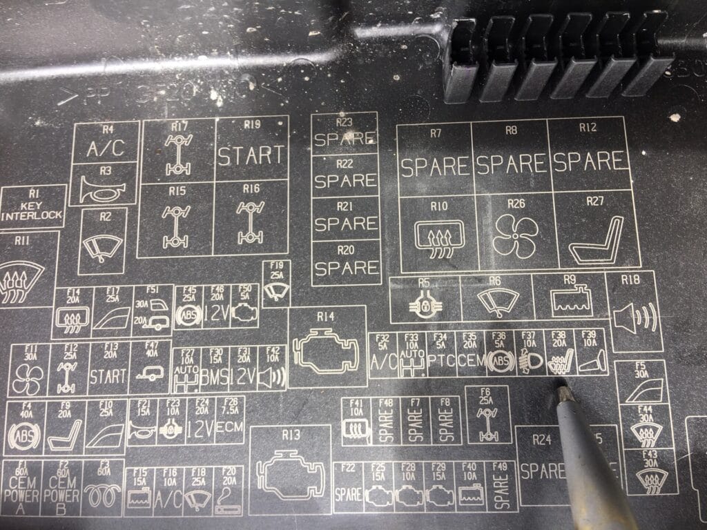 This engine bay fuse location F38 is for heated seats and is ignition switched so the owner can get a 12v supply from here and run a positive cable in with the sensor cable(s).