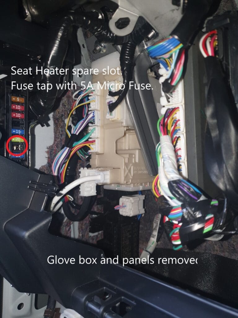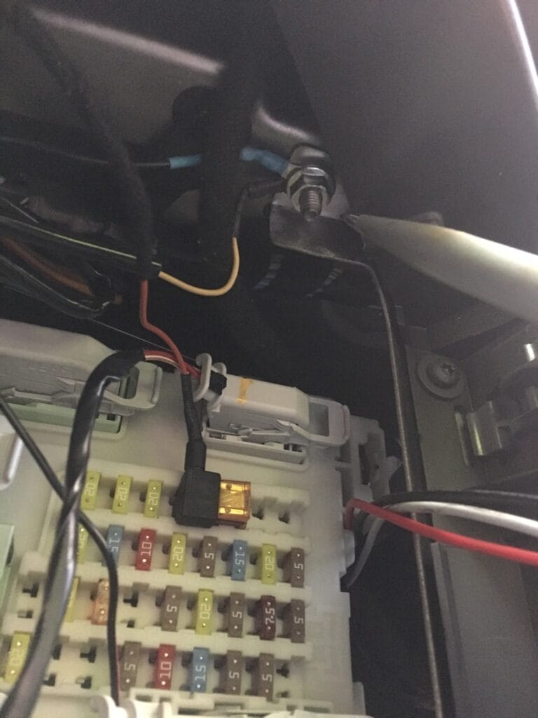 Use a Narva 'Add a circuit' and lengthen the wire using a soldering iron and heatshrink. Remove the 'Add a circuit' fuse. The lower bank of fuses is always on (door locks etc) use the upper bank to avoid parasitic drain. The 'Add a circuit' has blunt pins, file (or Dremel) the pins to a taper like a fuse to make it easily fit. Run the wire toward the metal side panel and behind the fuse box and up toward the glove box, this keeps the wire out of the way and stands the fuses upright making them easier to change.