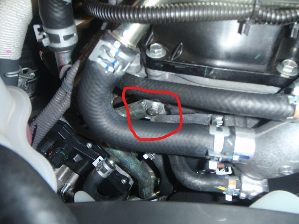 Important: This sensor location requires removing the intercooler. If installing without removing the intercooler, use the rear inner tappet cover bolts on both cylinder heads.